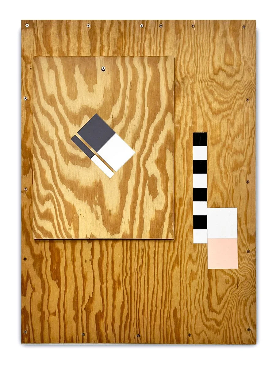 A parallel series presents highly technical, expertly photographed and printed color images of objects found in the fields—in particular, a brightly colored piece of striped fabric, tangled in driftwood is frayed by the elements but radiant in the light. At times presented as books, and other times adhered to installations of highly patterned plywood (a modular installation work called Utopia Library), images of twisted concrete and iron lay tumbled by the tide alongside sand, weeds and ocean debris. Patterns mimicking caution signs curiously appear, like weeds, throughout the installation; signifiers with nothing clear to reference but producing attention nonetheless. In these works, hierarchy atrophies and erosion reduces everything—manmade and natural—to a single state of refuse, possibly tumbling into something newly legible.
