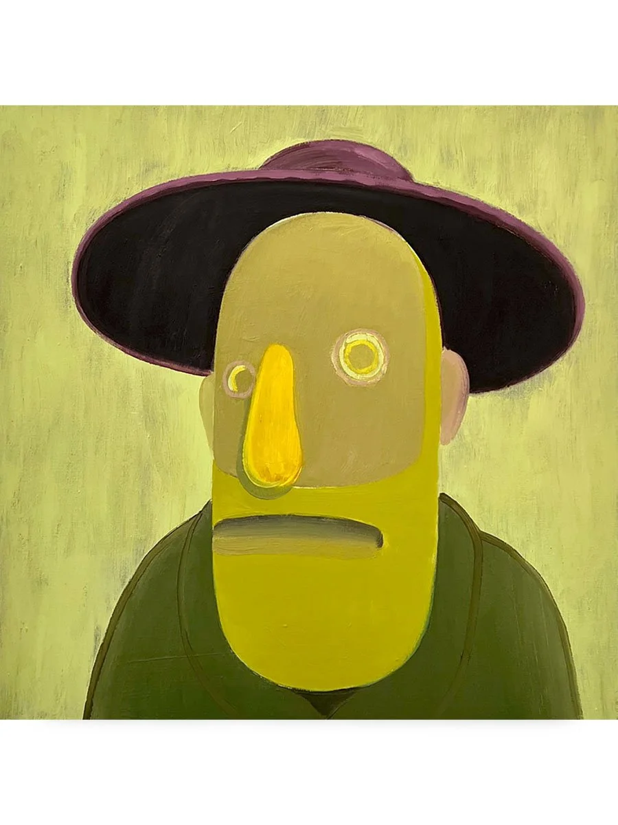 Yuhi Hasegawa’s paintings, while presenting as portraits, are not literal representations but a means of discovering what an expression, a color, a composition can reveal about the inner life of humans. He is interested in the instinctive and primitive qualities of a person and the expressive forms they can assume. Many of his figures wear a mask-like countenance, as though animated by something within. “I grew up in a house where there were so many masks from Africa and Oceania, and European kitschy objects hung on the wall that my father collected from all over the world. I was always scared but intrigued by them. That was my very first inspiration for sure.”