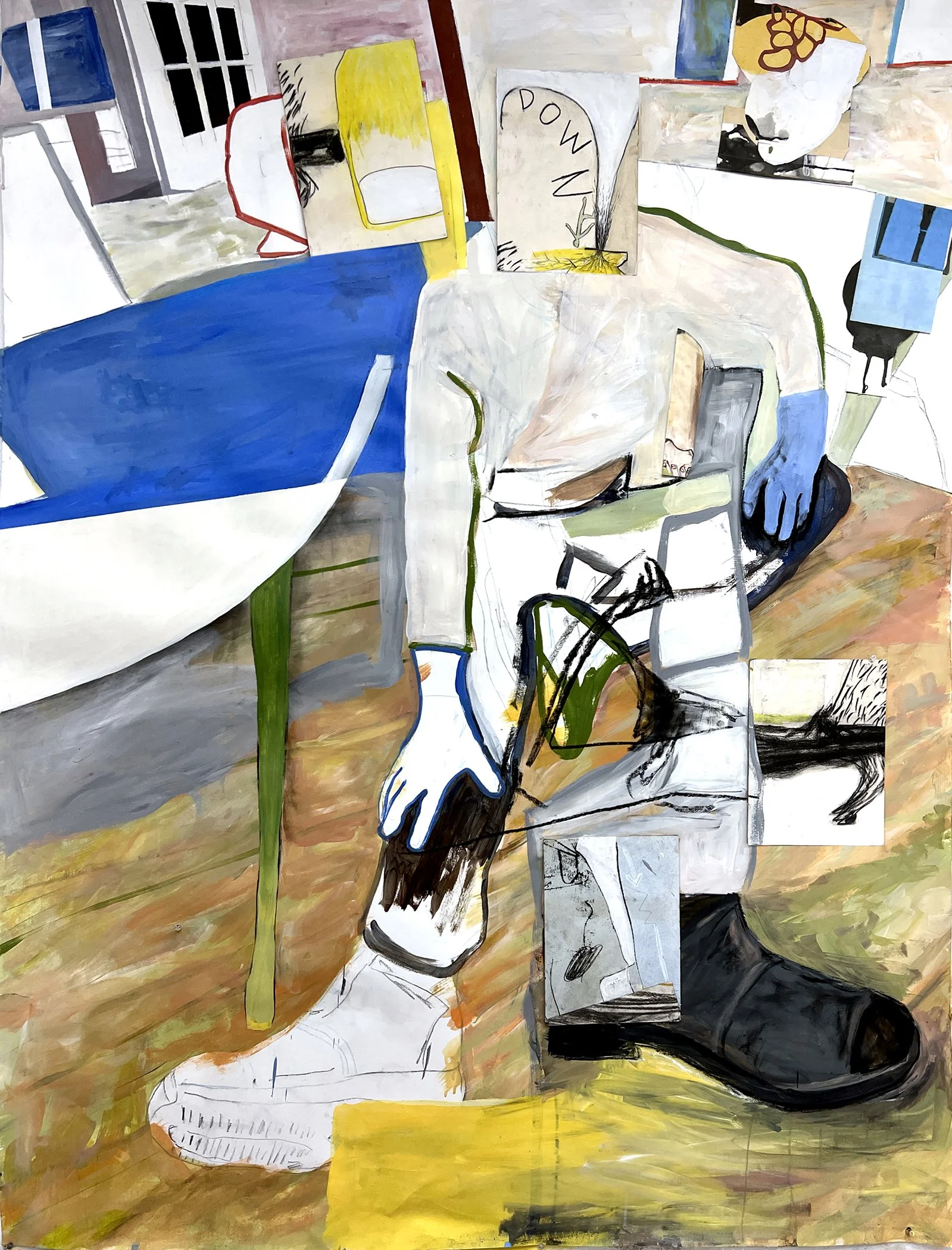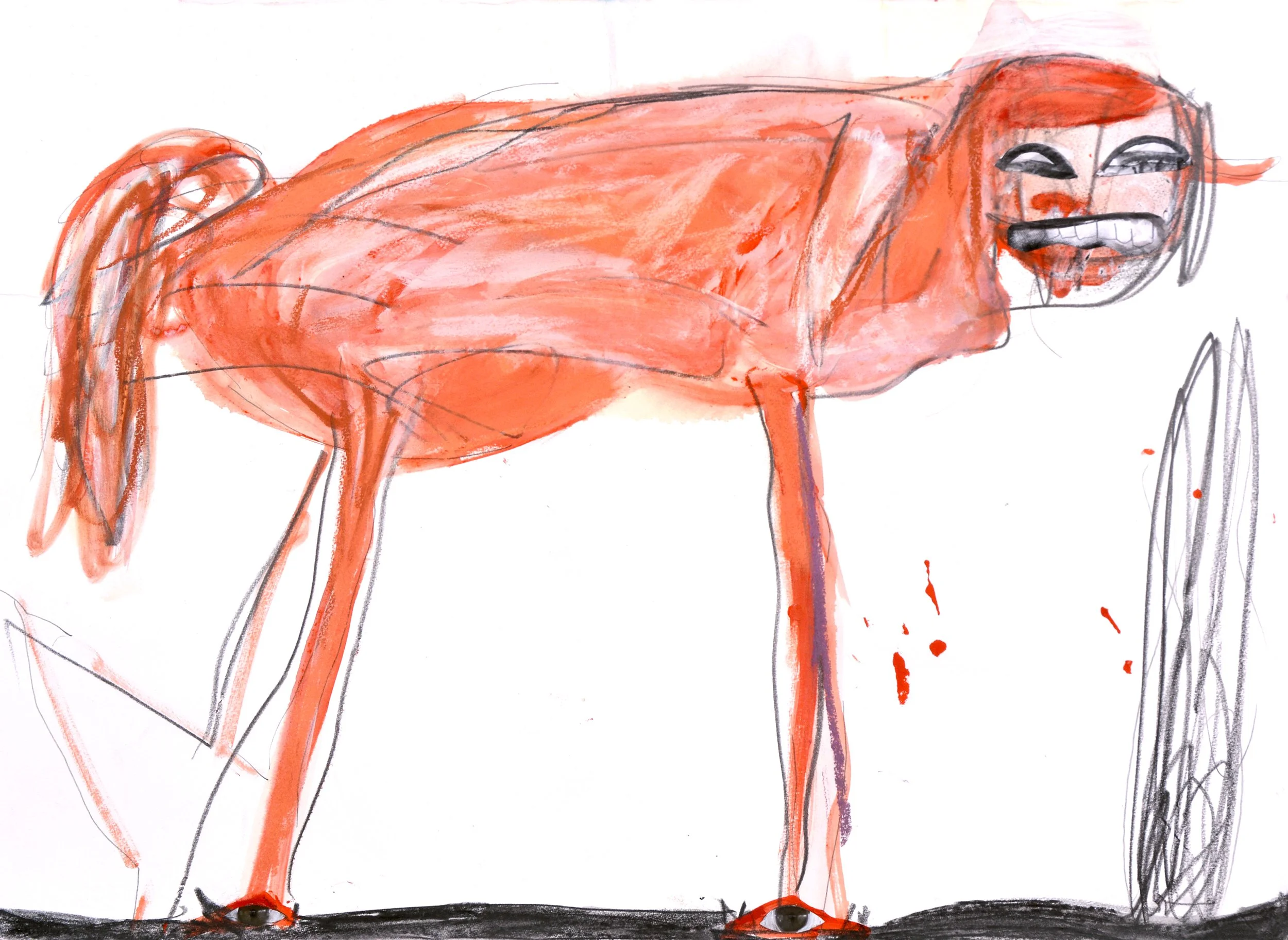 Acrylic and charcoal on paper. 18 x 64 inches.