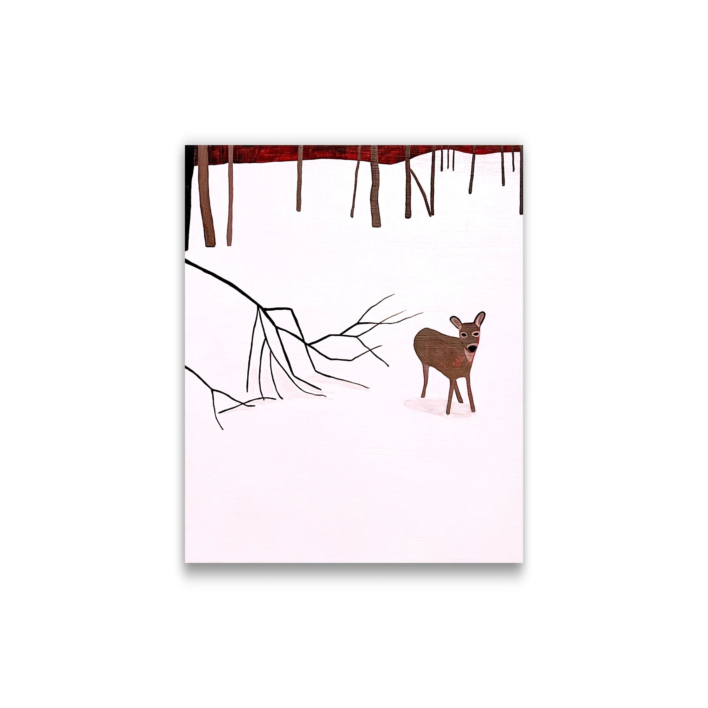 Carly Haffner’s painted canvases of wintry scenes, some with the neon glow of Christmas lights, are at once delightful (childhood excitement of the season’s magic promise) and a reminder of the cold and lonely stillness of the months ahead. Jody Isaacson’s Firewood sculptures set alight the stored energy of a piece of firewood. Their beauty is in their simplicity: “It’s just…that’s what it is!” In her large digital prints she dismantles the familiar three-dimensions of firewood into a single image, creating a new shape. Again, it’s “what it is,” but in a way never seen before. Local woodworker David Day’s beefy furniture is made from trees harvested and milled on his own land.
