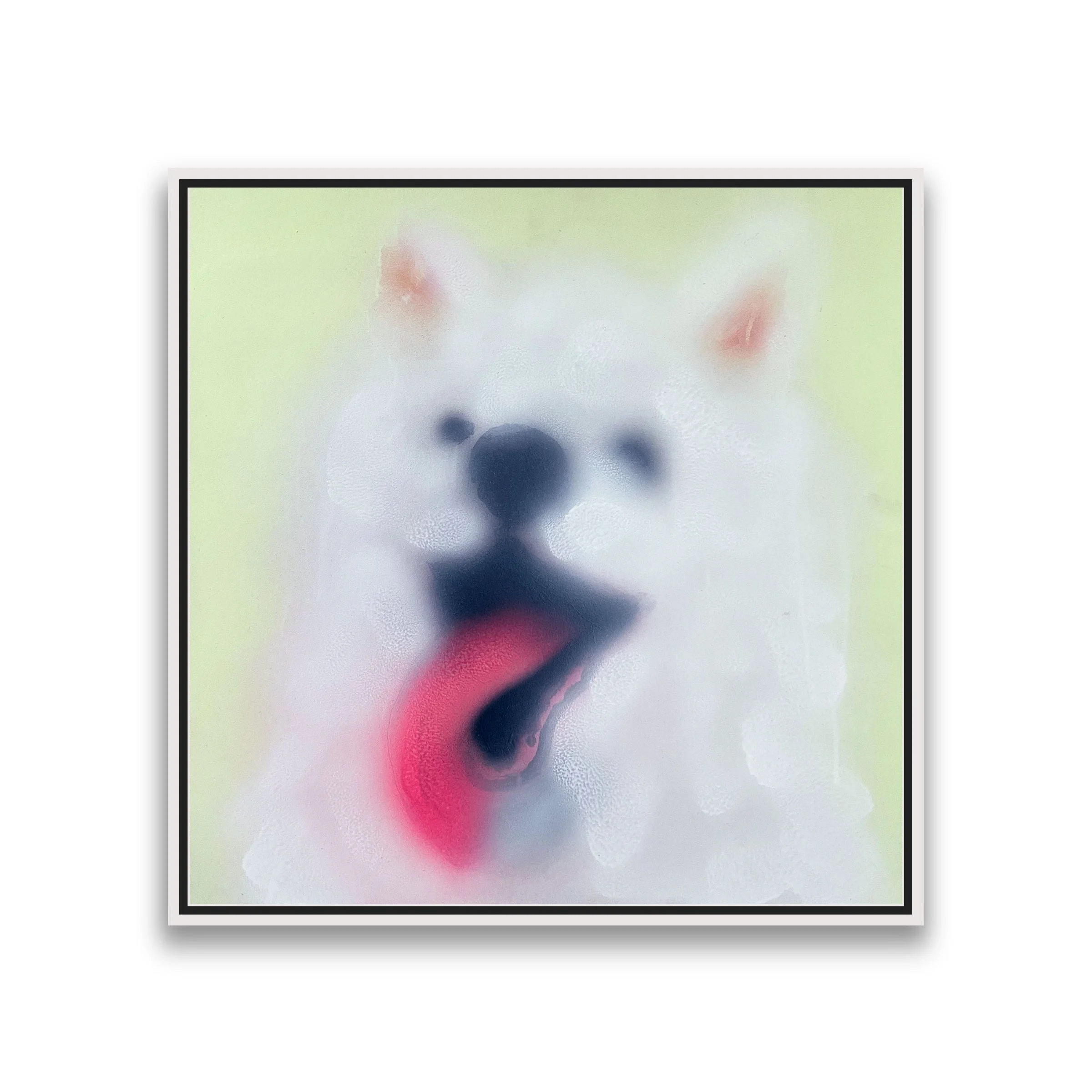 Many of the artists of The Snuggle Show have taken inspiration from the animals around us. Dogs conjured in spray paint by Kevin Ford become totems to super-sugar dopamine pleasure. Small canvases of front-face bears by Jerry Todd, cuddly and round as cartoons, bear expressions of various psychological states. Curious cats with pointy noses are dashed off on cardboard by Dasha Shishkin, along with story-book prints of mice engaged in un-story-book pursuits. BB&PPINC amuse with cartoon scenes of unlikely animal friends. The dignity and beauty of a lamb and cow, denizens of the muddy barn-yard, captured by Kevin Blumenthal. A stoic bear carved in rough wood by Robert Parker, rendered with minimal angles and softened with shag, sewn on by his partner Margaret Bazura.