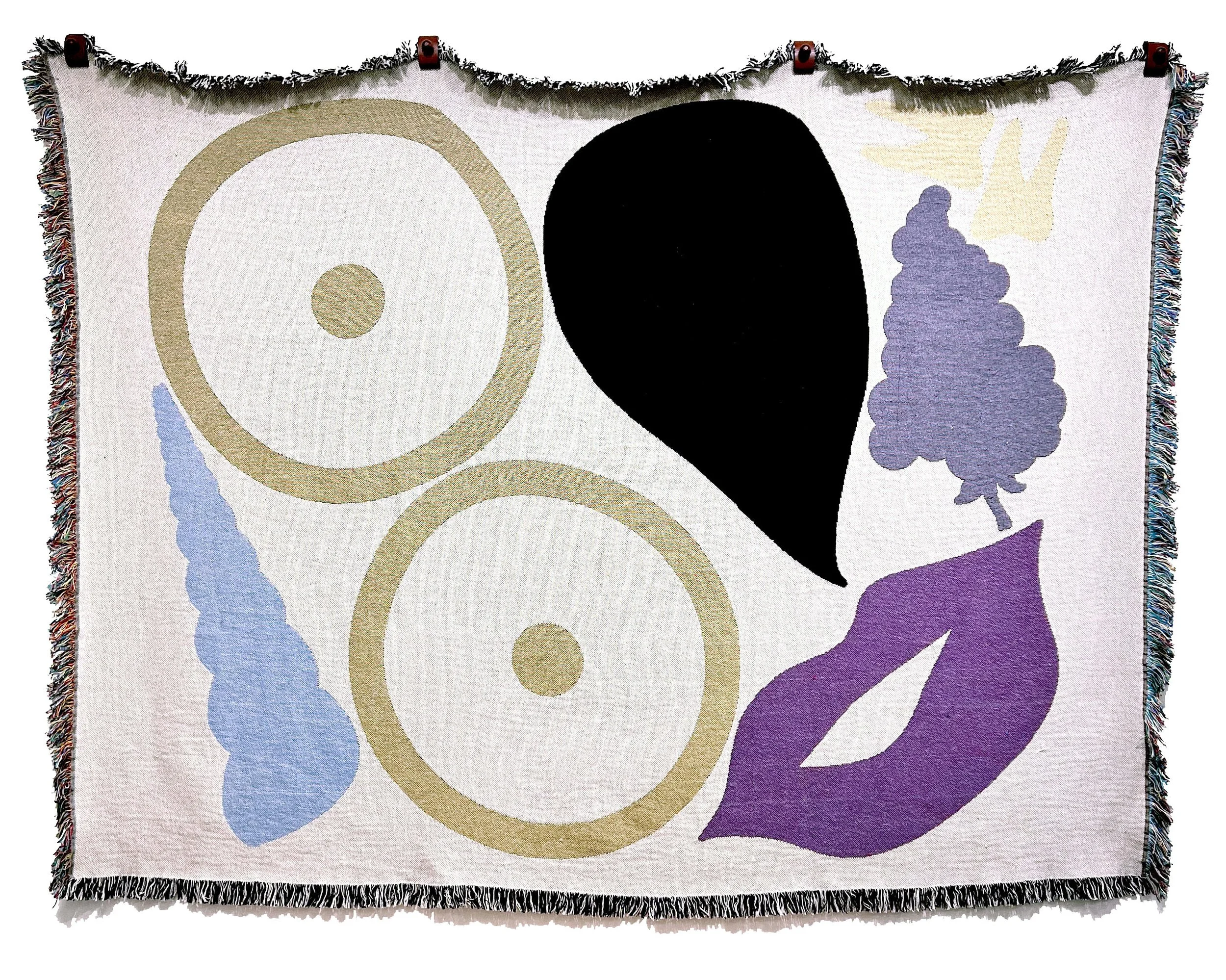In The Snuggle Show, you can wrap yourself in a blanket bearing the bold narrative shapes of Damien Davis; a comfort in form while an engagement with the visual language cultures use to code and decode blackness. Natalie Zayne offers quilted abstract textiles that play with scale and function fit to warm the grey matter.